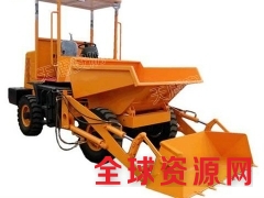 自装式翻斗车采用四轮驱动,柴油机后置,除具有轴荷分配合理、爬坡能力大、稳定性好、后桥可以摆动等特点以外,还具有载重和容量适中、小巧轻便、机动灵活、转弯半径较小、操作舒适、维护简便、对路面要求不高、能在狭窄场地和道路恶劣的工况使用,并具有液压传动系统,装卸料更方便,用途更广泛。